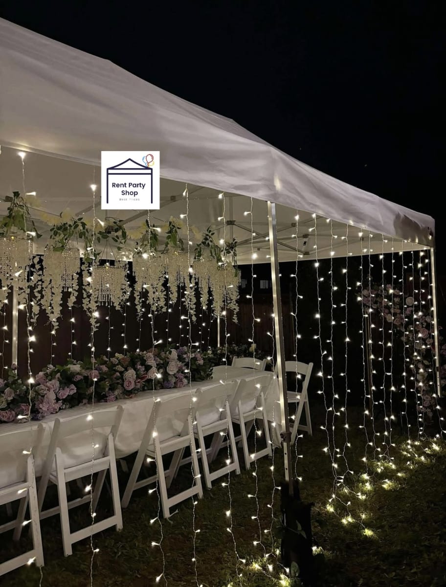 Add a magical touch to your outdoor event with our beautiful curtain lights! Perfect for tents, these twinkling lights create a warm, inviting atmosphere for any celebration. Easy to install and energy-efficient, they’re the perfect way to set the mood, whether it’s a wedding, party, or corporate event. We deliver across the GTA, Halton Region, and Niagara Region. Make your event shine—add curtain lights to your tent rental today!